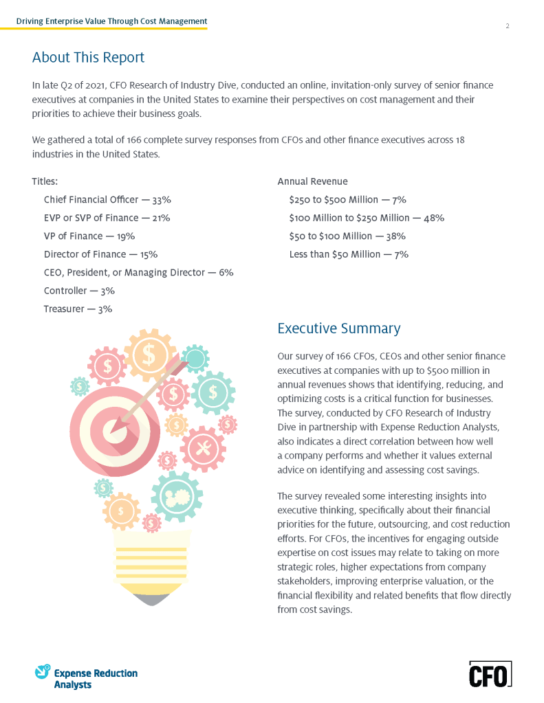 In Partnership with CFO Dive, Expense Reduction Analysts’ Driving Enterprise Value Through Cost Management whitepaper can help your business leverage your finance function as a strategic partner and catalyst for growth.